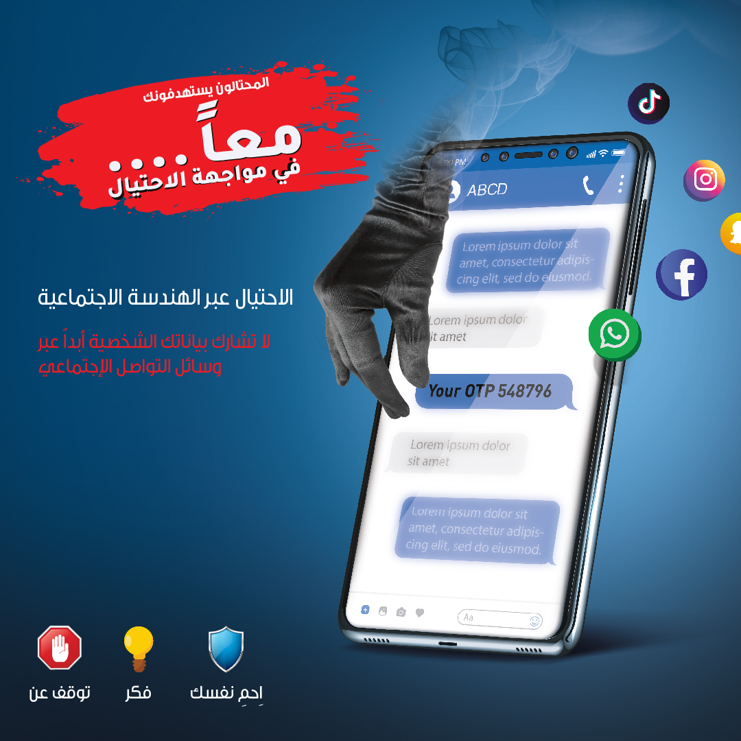 - لا تشارك كلمة السر لمرة واحدة OTP الخاصة بك أو بياناتك الشخصية على أية وسيلة اتصال رقمية.