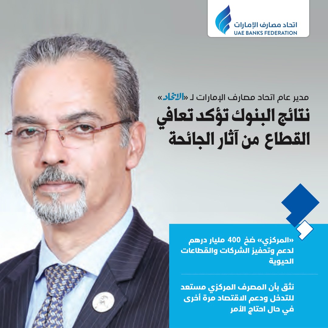 تؤكد نتائج البنوك في النصف الأول من 2021 أن القطاع المصرفي يسجل علامات تعافٍ واضحة، رغم الآثار التي خلفتها جائحة كوفيد- 19، بحسب جمال صالح مدير عام اتحاد مصارف الإمارات.